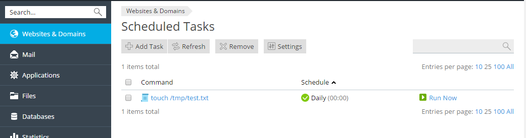 Als u scripts op uw hostingaccount wilt uitvoeren op een specifieke tijd, gebruik dan het takenrooster in Plesk om het systeem de scripts automatisch voor u te laten uitvoeren.