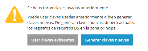 - Si anteriormente no se había firmado la zona, Plesk le pedirá que genere las claves que se usarán para crear una firma.