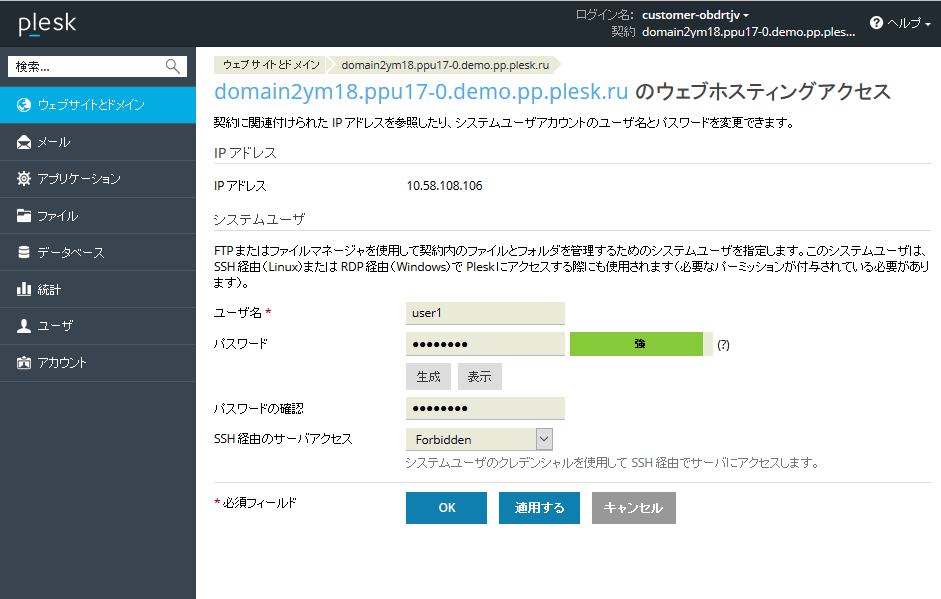 FTP または SSH を介して契約への接続用のユーザ名またはパスワードを変更するには: