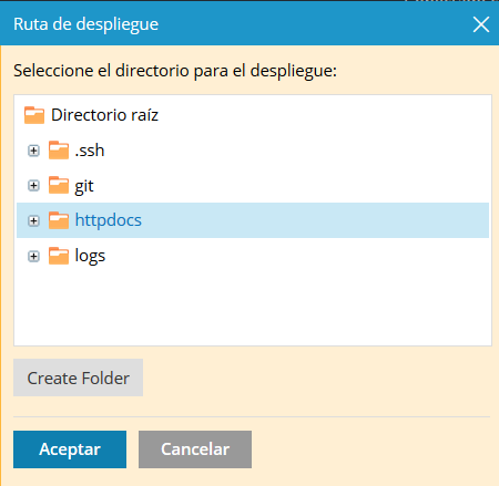 /httpdocs. Si desea usar otro directorio, haga clic en el nombre del directorio deseado.