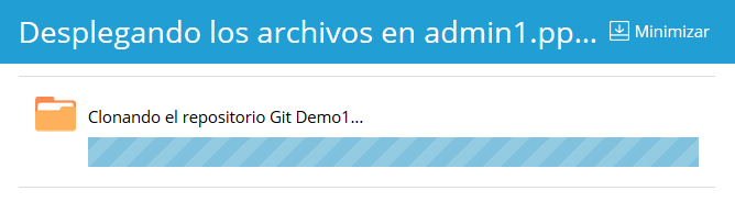 - Despliegue manual. En este caso, deberá desplegar los archivos de forma manual haciendo clic en el botón Desplegar desde repositorio presente en Sitios web y dominios > Git. Asimismo, también puede desplegar archivos de forma manual haciendo clic en el botón Desplegar que aparece al lado del nombre del repositorio en Sitios web y dominios.